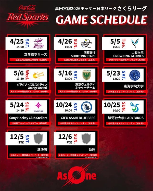 本年度の『高円宮牌2026ホッケー日本リーグ さくらリーグ』の試合日程です。